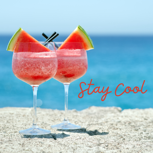 - Stay hydrated! Be sure to drink plenty of water and limit alcohol while outdoors, as it can dehydrate you quickly. Replace lost electrolytes with a low sugar electrolyte replacement drink like Liquid IV. Enjoy snacks that are high in water content, like watermelon, grapes, cantaloupe, and berries. Popsicles are another great way to keep your cool!
